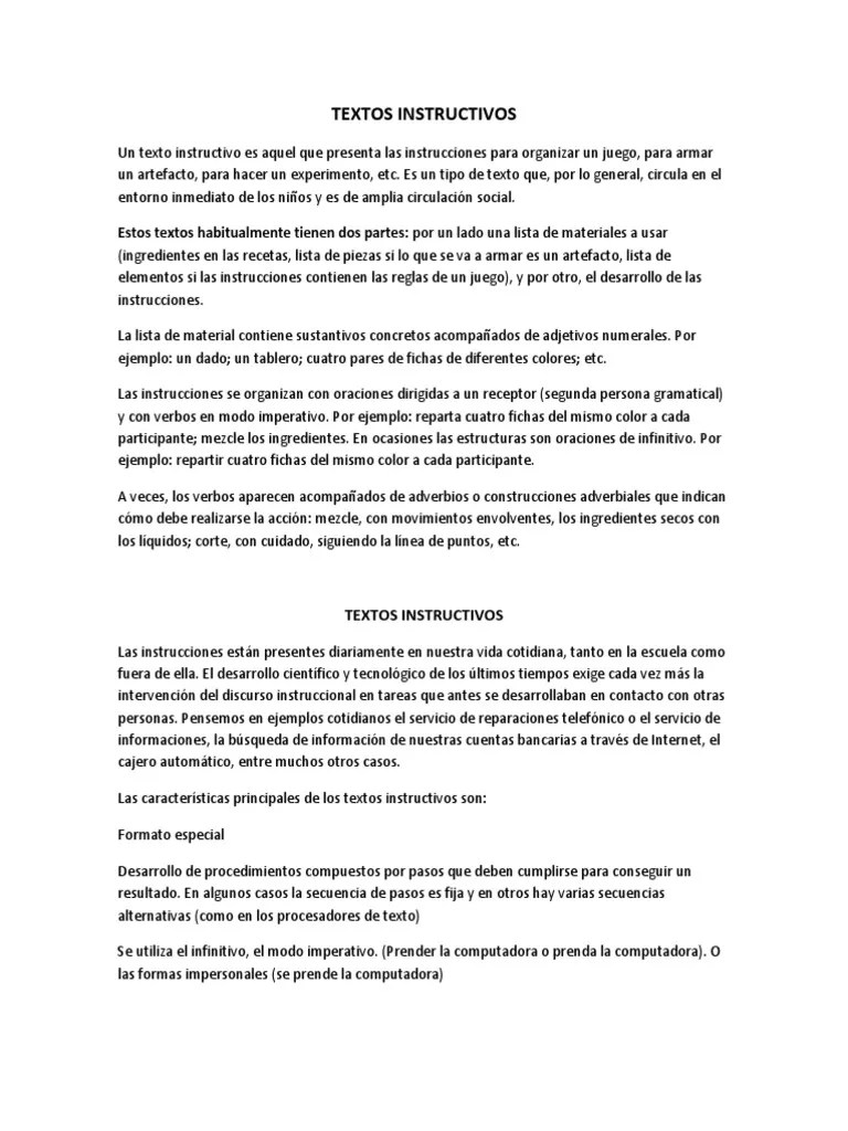 Los textos instructivos, valga la redundancia, son instrucciones que están presentes todos .